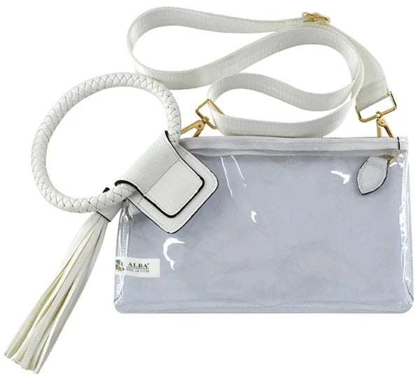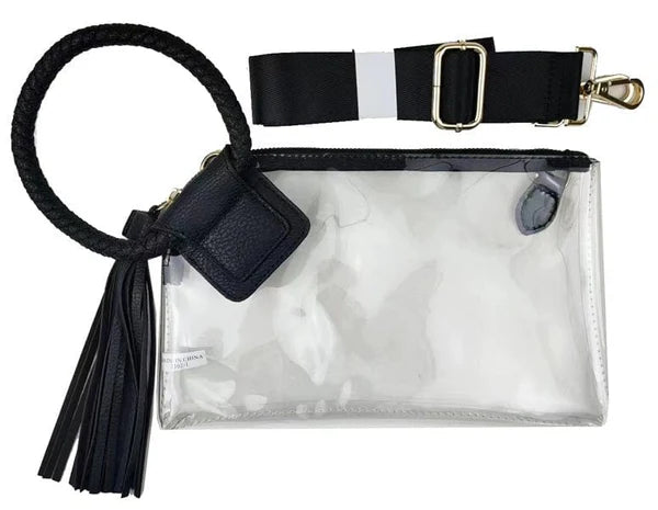 Clear Cuff Handle Tassel Wristlet Clutch/Crossbody