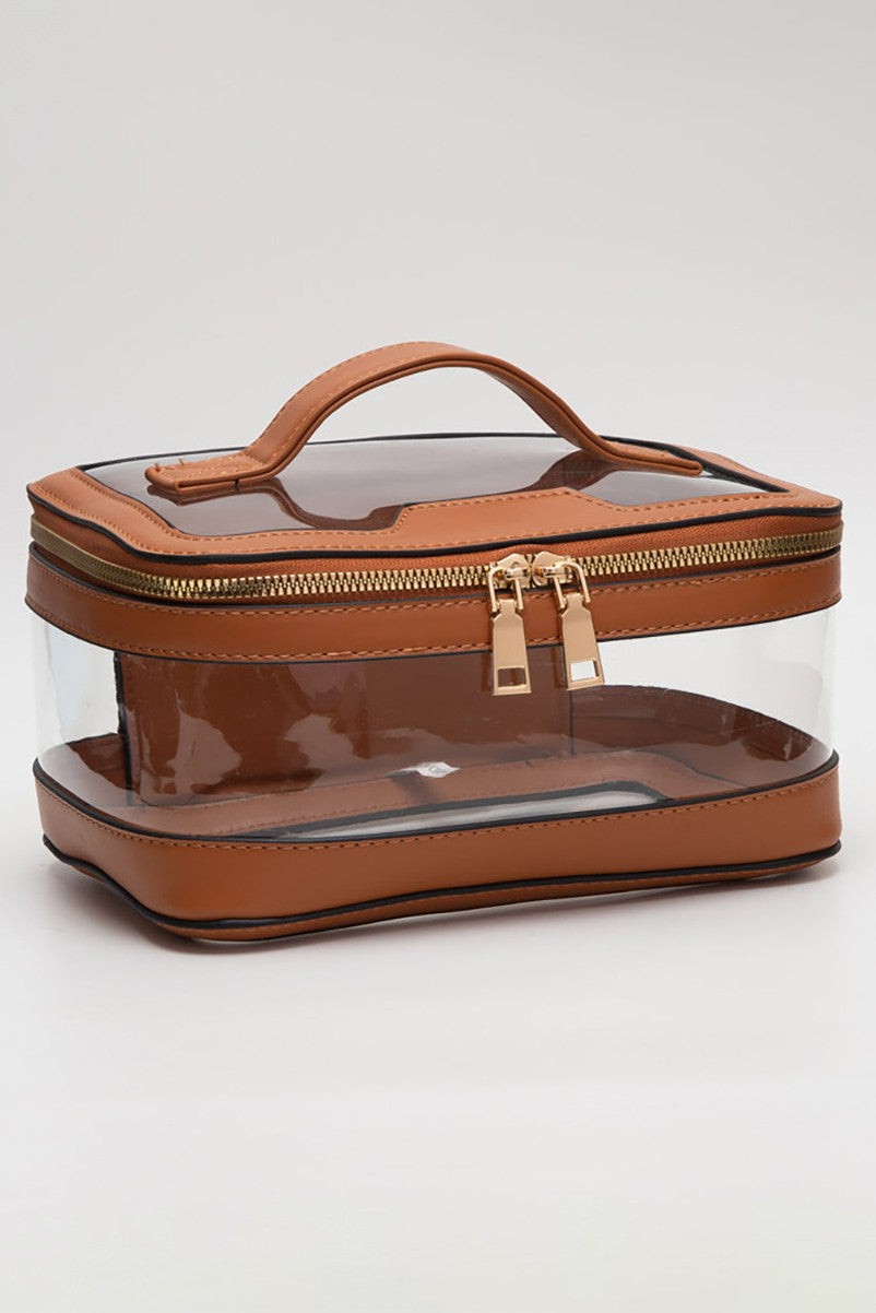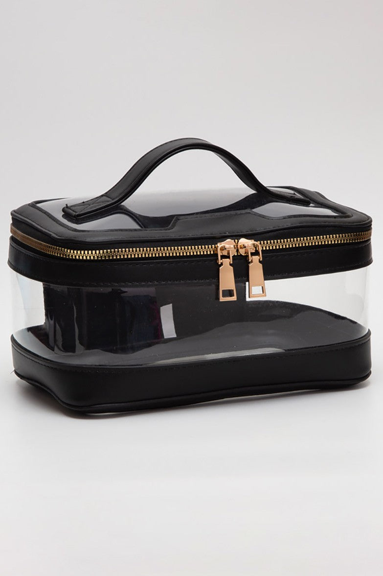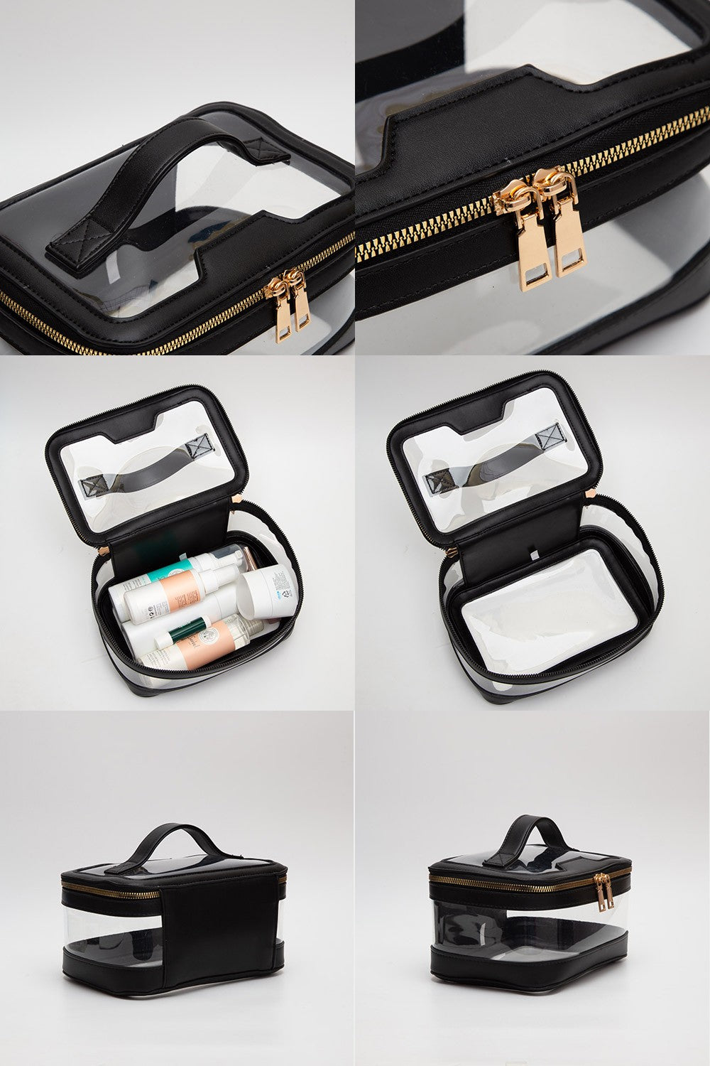 Size : 9" X 6" X 4.5" Top Handle Size : 1.25" L Zipper Closure Transparent Portable Makeup Bag / Travel Bag