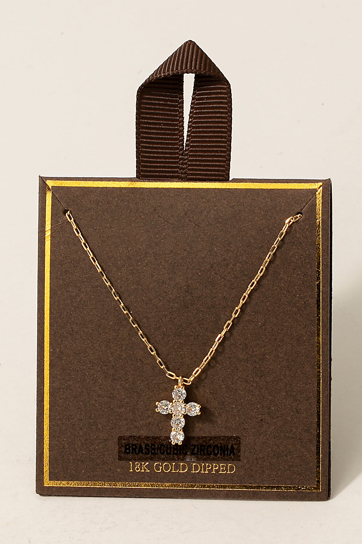 Gold Dipped CZ Cross Pendant Necklace