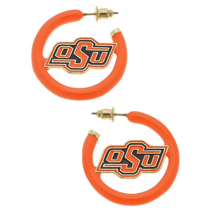 Oklahoma State Cowboys Logo Enamel Hoop Earrings by Canvas Style