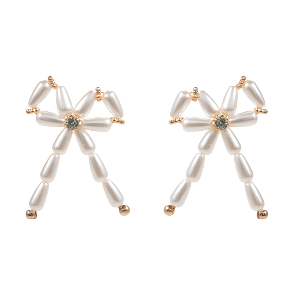 Pearl Bead Bow Earrings