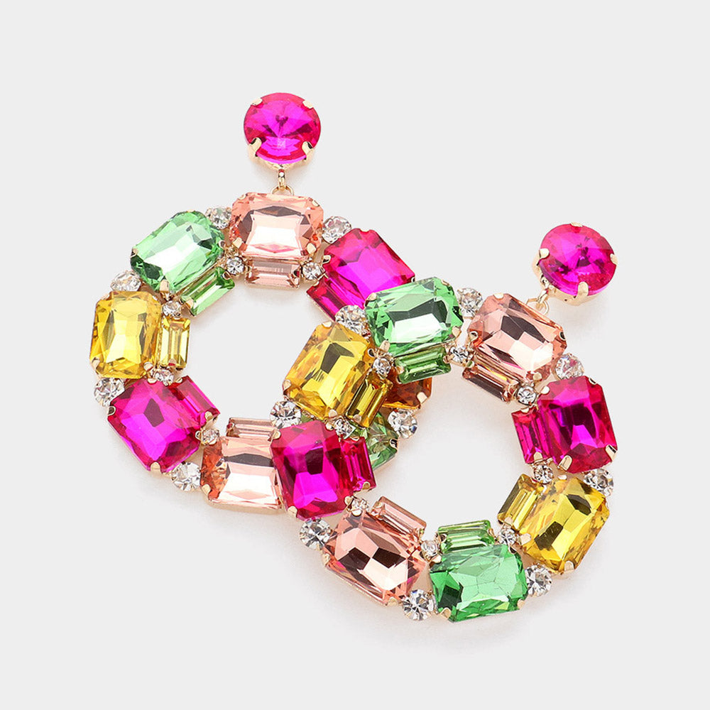 Square Stone Cluster Earring