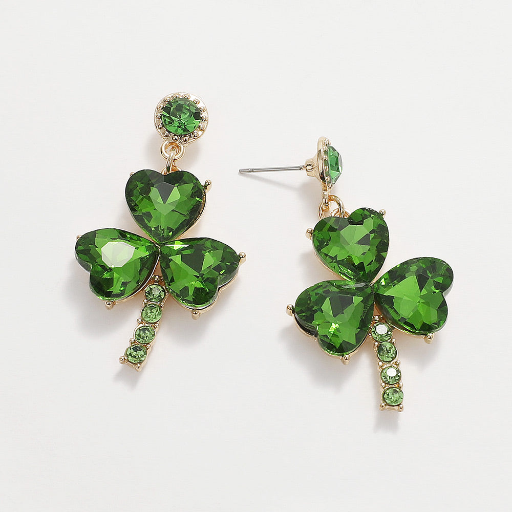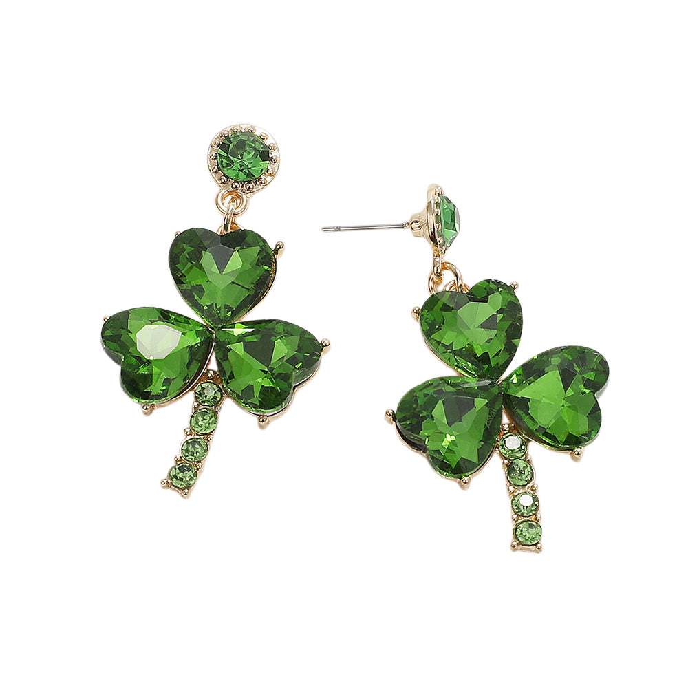 St Patricks Shamrock Clover Stone Dangle Earrings