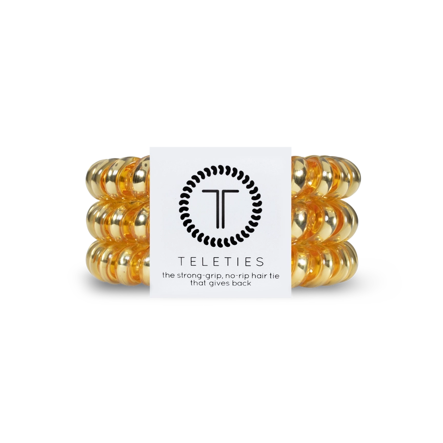 - Hold your hair and enhance your style with TELETIES. The strong grip, no rip hair tie that doubles as a bracelet. Strong, pretty and stylish, TELETIES are designed to withstand everyday demands while taking your look to the next level. Sold in packs of three. The large size is 6.5cm wide x 1cm thick.